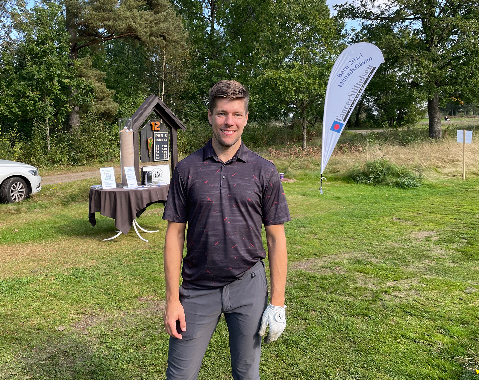 En nöjd Robert Rosén vid Cancerstiftelsens hål.