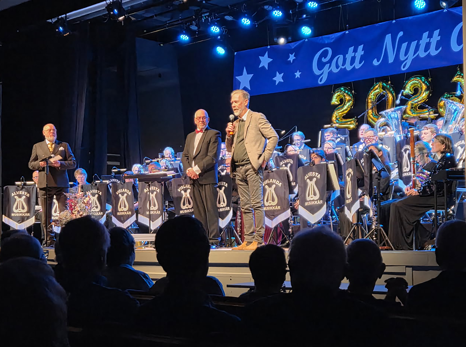 I Folkets Hus fanns Sven och Anni från stiftelsen på plats när portarna slogs upp kl 14.30 för 10-årsjubilerande Alvesta och Vislanda Musikkårers nyårskonsert med Kenneth Lindblad som dirigent. Fullsatt med nära 300 personer i publiken som bjöds på en härlig upplevelse från Radetzkymarsch till Champagnegalopp. Väl inramat av presentatören Anders Nilsson och med Carolina Tholander som sångsolist och Anders Lund som xylofonsolist.